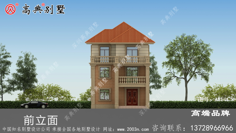 A1141号别墅外墙主要材料:水泥构件、真石漆、外墙砖、310X310S瓦