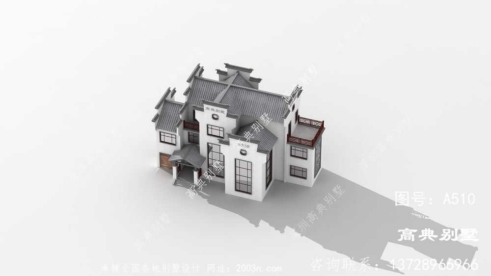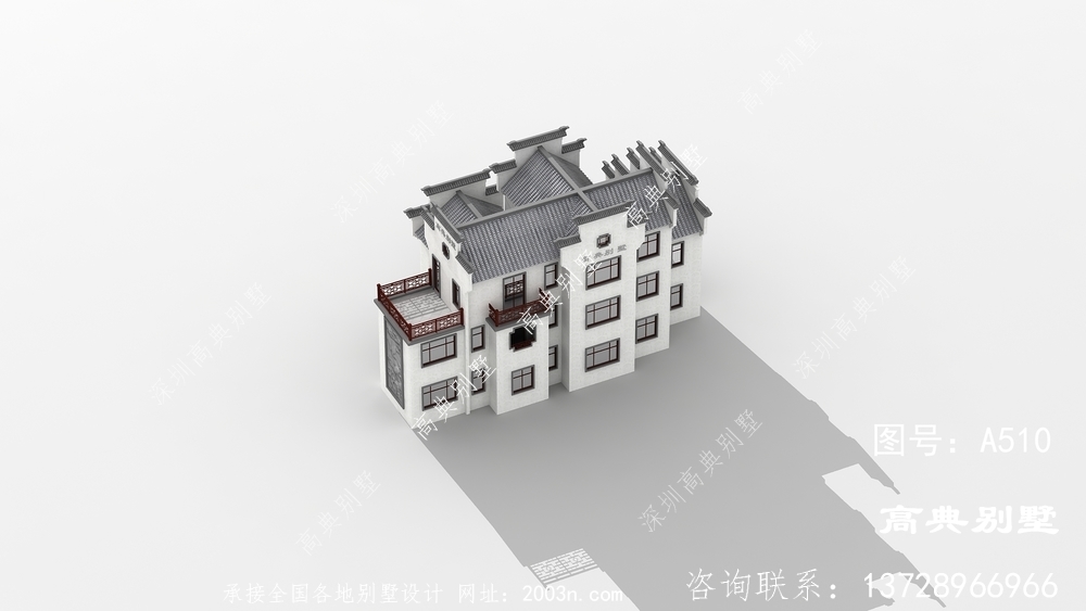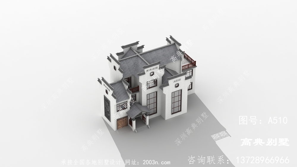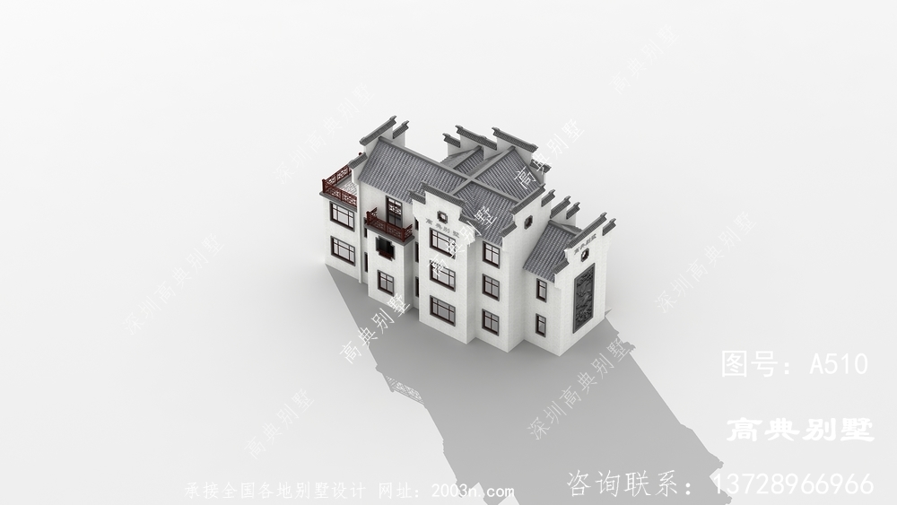 三层复式徽派别墅外观效果图