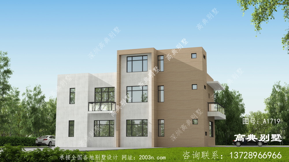 下面小编推荐的这款清新而自然的三层现代风格别墅,造价经济,村里人人都能建得起。