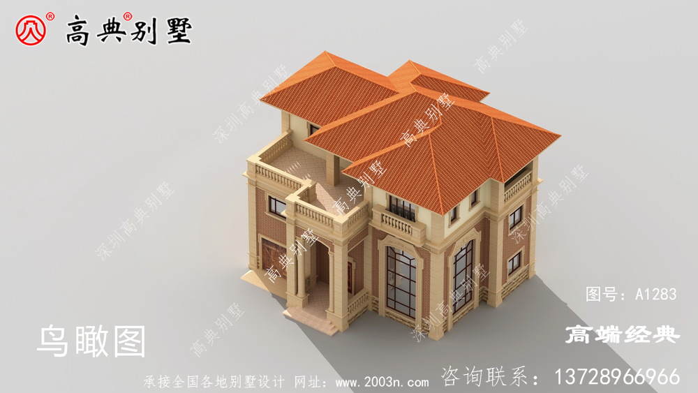 A1283号别墅设计图纸及效果图介绍: