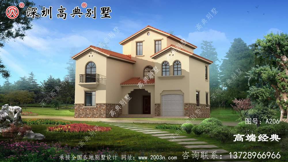 A206号别墅设计图纸及效果图介绍: